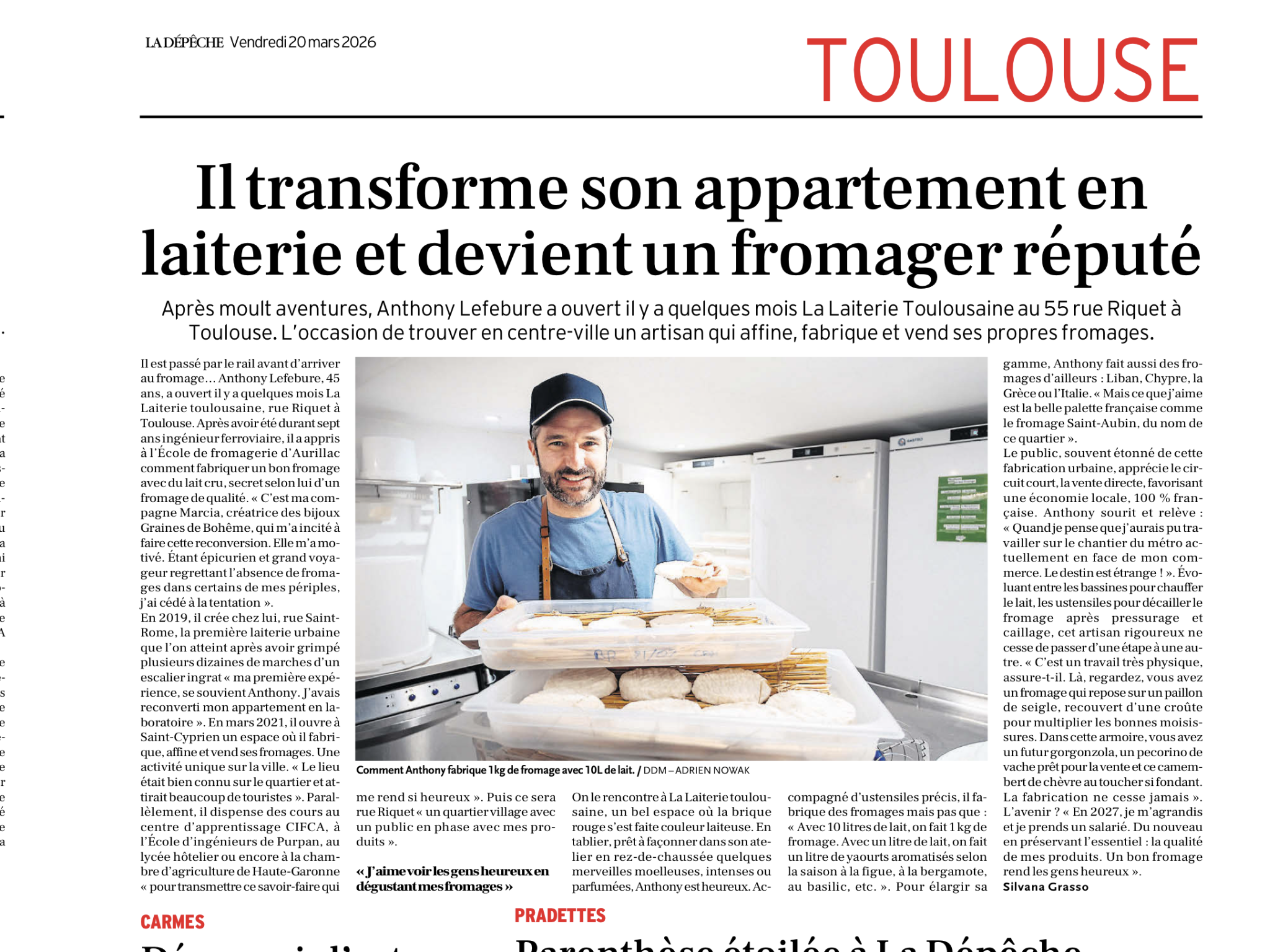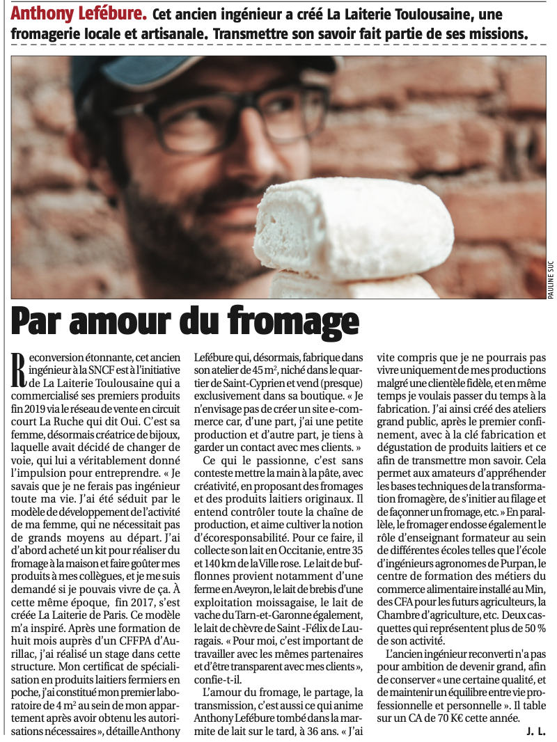 Les journalistes de la Gazette du Midi sont venus à la Laiterie Toulousaine, intrigués par ma reconversion d’ingénieur… à fromager !
