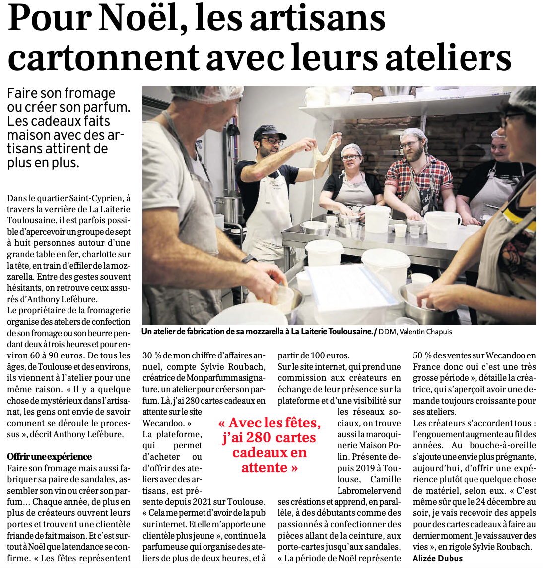 À l’approche des fêtes, les journalistes de La Dépêche ont mis en lumière mes ateliers de fabrication !